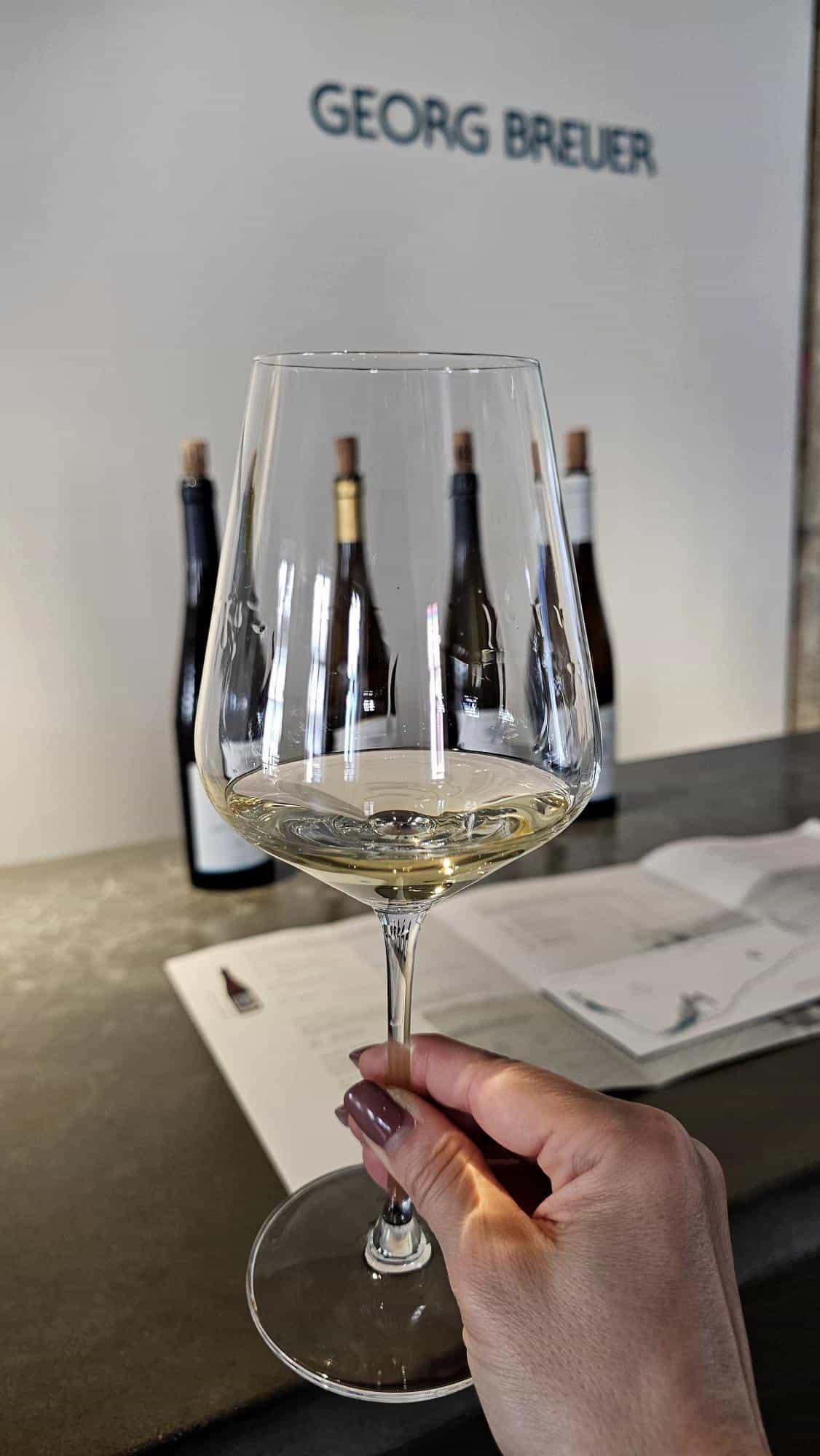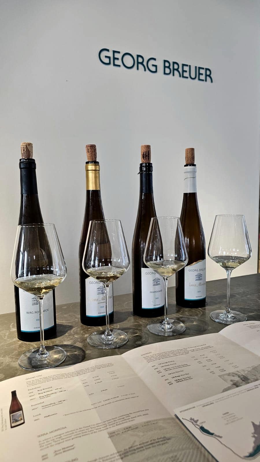 I also try a dry Lorch. It’s a vineyard with wild terroir: insanely steep slopes dominated by quartz and slate. Katharina tells me the vines’ roots go down as deep as 20 meters here, and honestly, I taste exactly that in the glass: complex minerality, grapefruit, nectarine, plus subtle smoky and wet-stone (think damp cement) vibes. The 2023 (warmer year) and 2024 are equally mineral, but 2024 leans more into green apple, lemon, and a hint of petrol. And because we save the best for last, I discover Terra Montosa, Breuer’s Grand Cru equivalent. Three Rieslings from 2020: Patientia with fine buttery aromas, another 2020 Berg Roseneck that I declare the most suave, delicate, and feminine Riesling of the bunch, and a “warm” 2023 in the glass, dominated by metallic aromas, yet still very elegant.I leave deeply impressed by the quality of the wines, the design of the wineshop, and the hosts’ knowledge. I invite you to discover more on their site (https://georg-breuer.com) or in the Wine for Normal People podcast, where Theresa shares the story of Rheingau Riesling.
