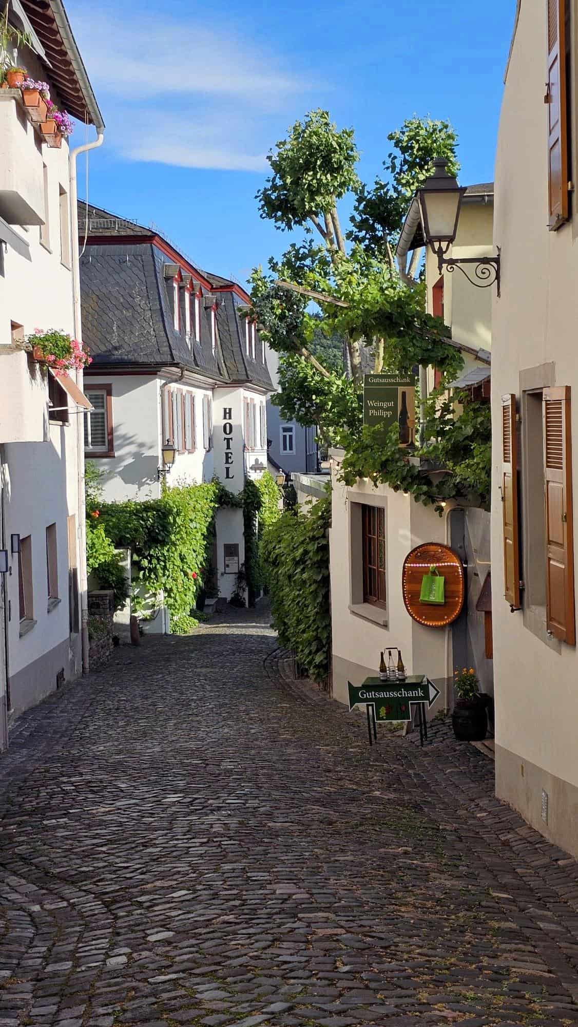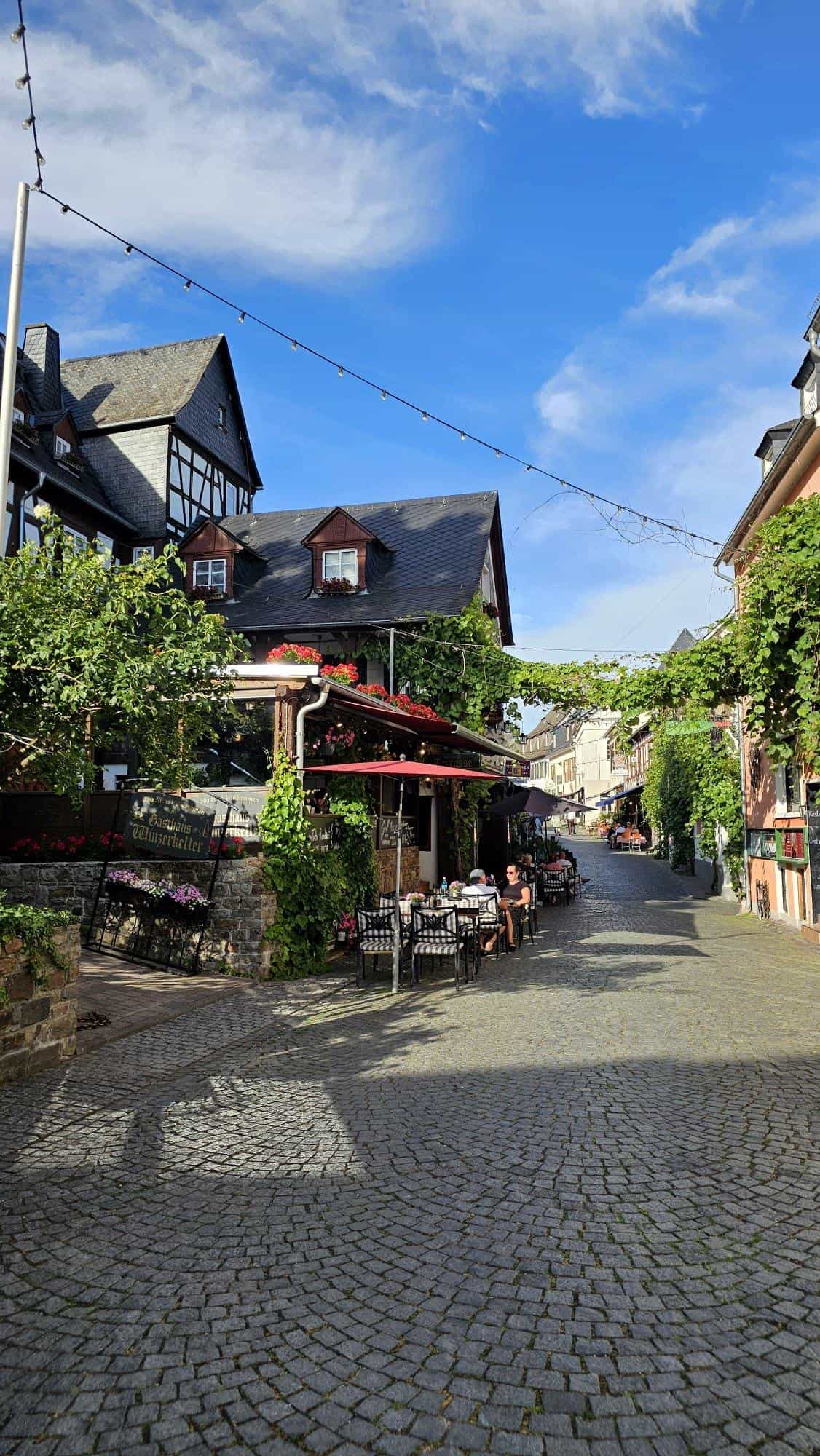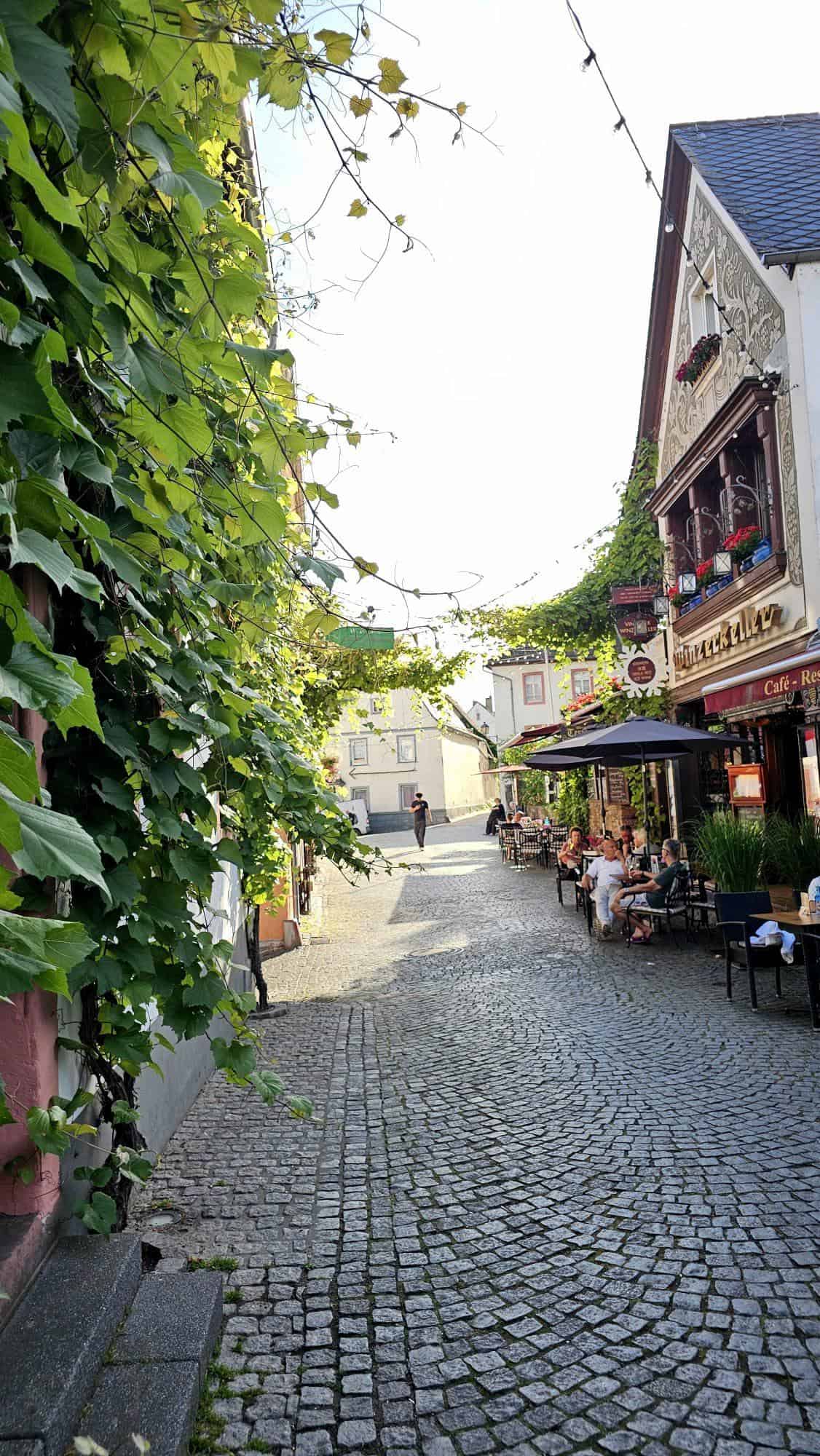 I’ll zoom in on the little town itself, Rüdesheim, which is absolutely worth it from every angle. It’s tiny but super charming, with postcard-perfect scenery and vines literally spilling into the streets. It’s fully geared up for visitors, packed with restaurants, bars, and wine-focused activities. It gave me one of the coolest wine experiences yet: a cable-car ride right through the vineyards .