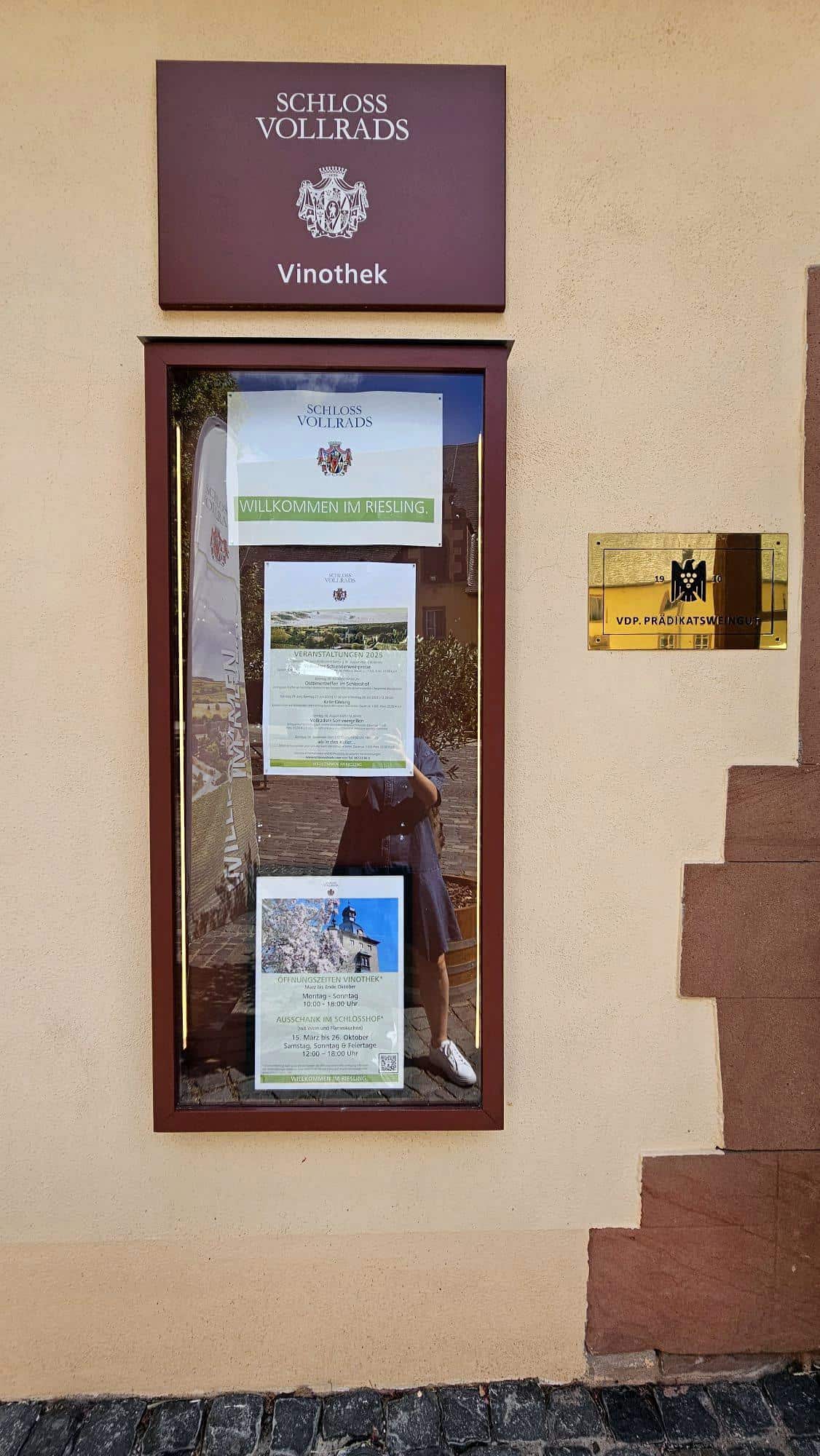 I’d booked a Friday 5 p.m. tasting at their wineshop in Rüdesheim (cellar tours are apparently only for groups of 5+), plus a 7 p.m. dinner at the winery restaurant. They even recommended the estate hotel in the email (Ruedesheimer Schloss), which looked decent at first glance, but it was fully booked, so I found something nearby instead. For the tasting, I headed to the wineshop at Grabenstraße 8, 65385 Rüdesheim am Rhein—impossible to miss. They have a spacious tasting room, shop, and best of all, parking (don’t be like me and park two streets away).