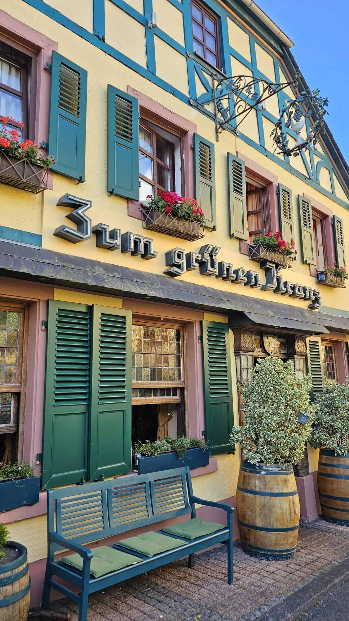 I mentioned earlier that I couldn’t book the Breuer family’s hotel, so I picked something close to the winery and within budget (I’d set a limit of 100€ per night). I went with Weinhotel des Riesling Zum Grünen Kranz: a single room for one night, no parking, no breakfast, 84€.