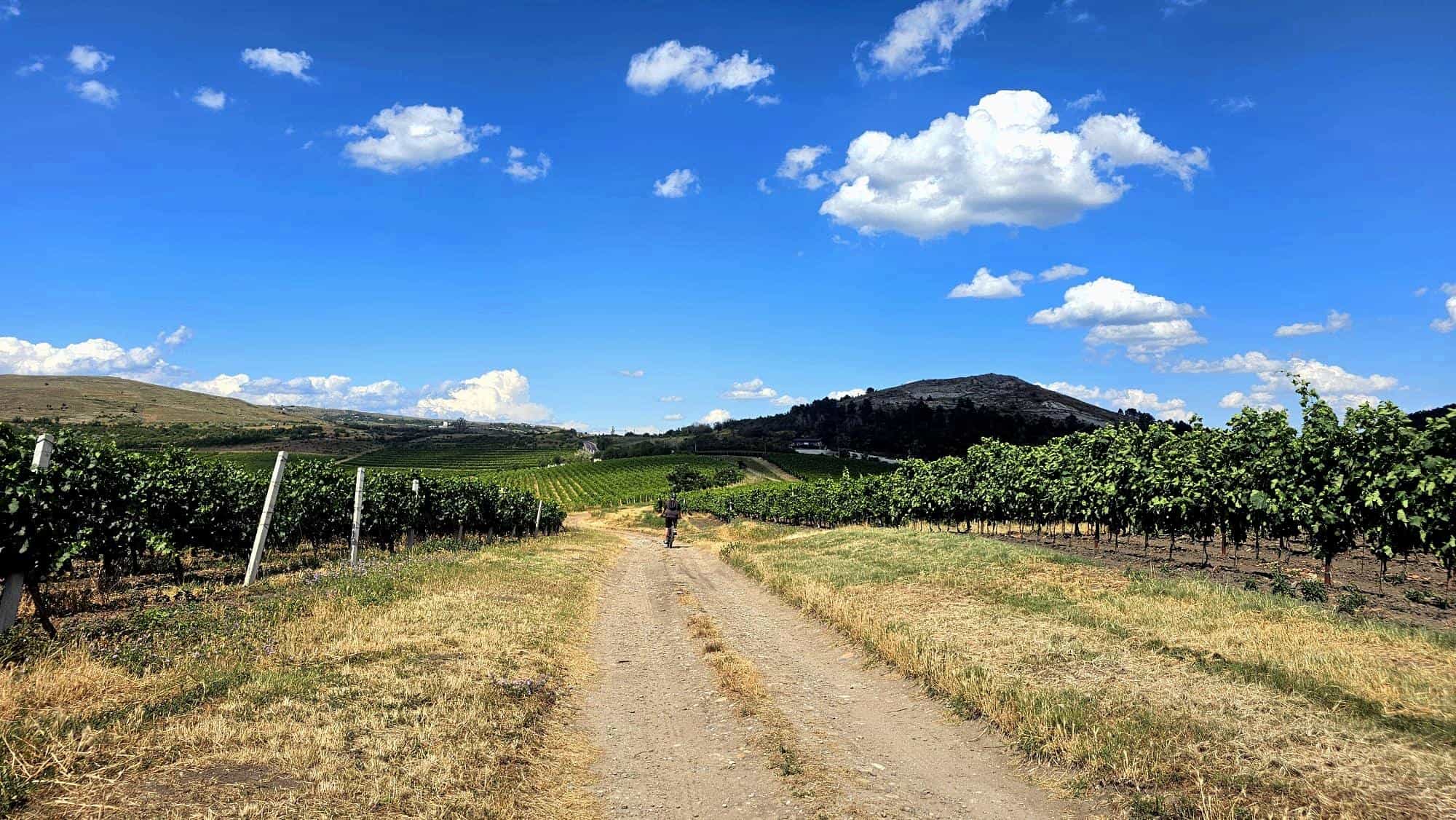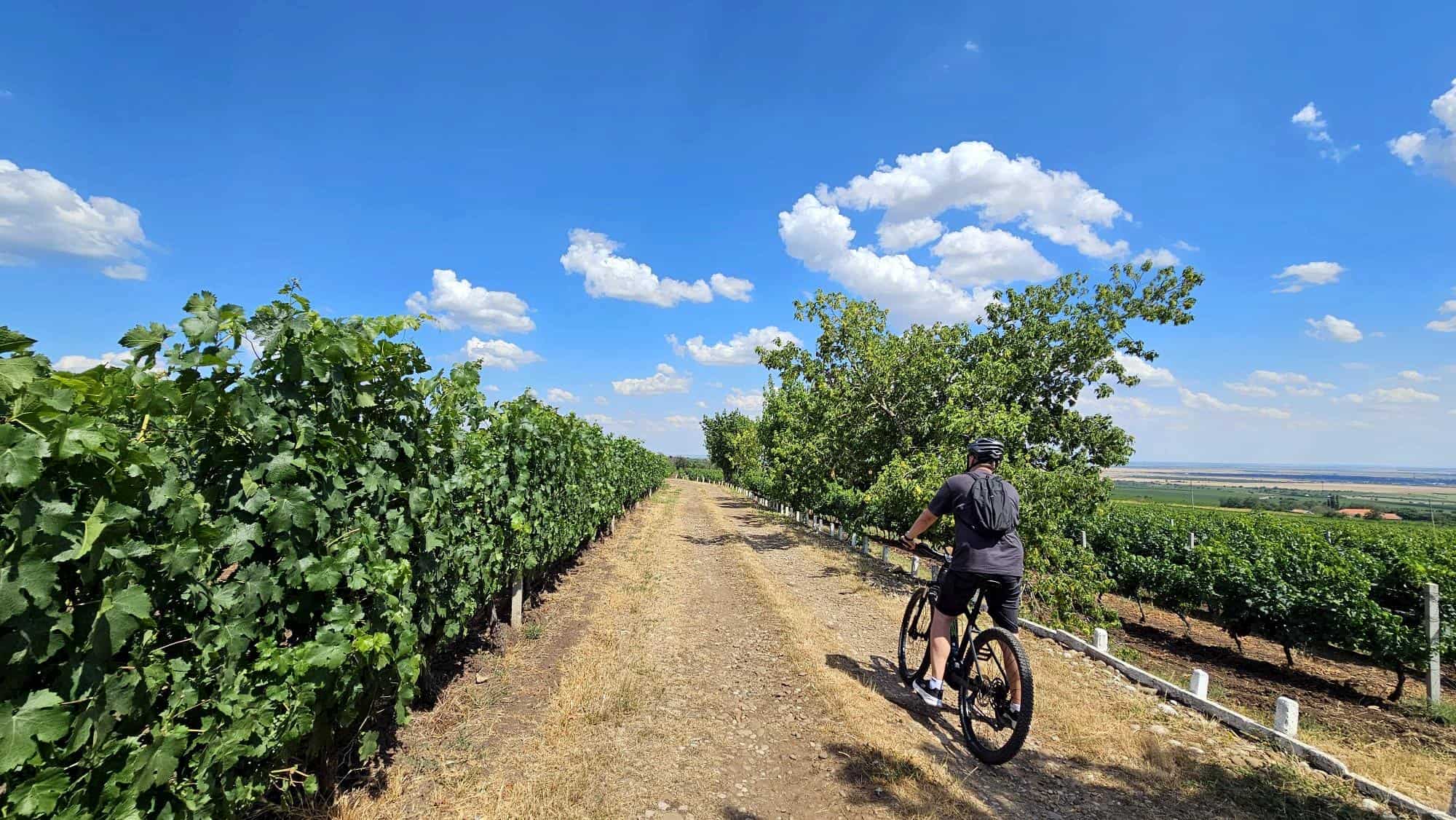 But since we’d arranged with Bicicleta Năzdrăvană to leave bikes at Licorna, we were in a rush to catch a few more hours of pedaling. So off we went, huffing and puffing, through the vineyards toward Velvet Winery.