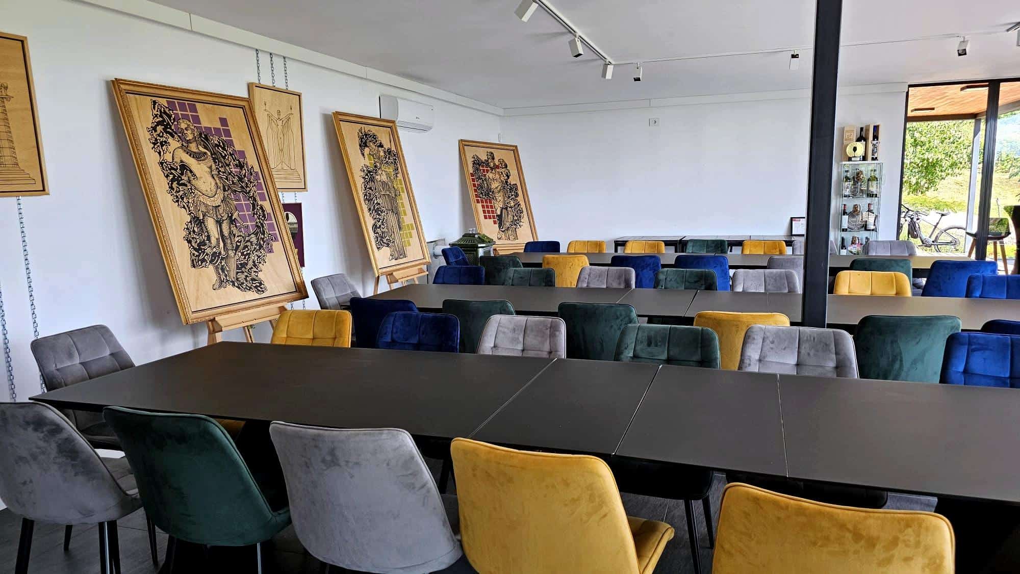 Following the same pattern as most Dealu Mare wineries, rich in legend and viticultural experience, the vineyard itself is young, founded in 2016, when they built from scratch the tasting and event hall, restaurant, and accommodation. This time, we found plenty of lodging – 28 spots in both the manor and wooden cabins.